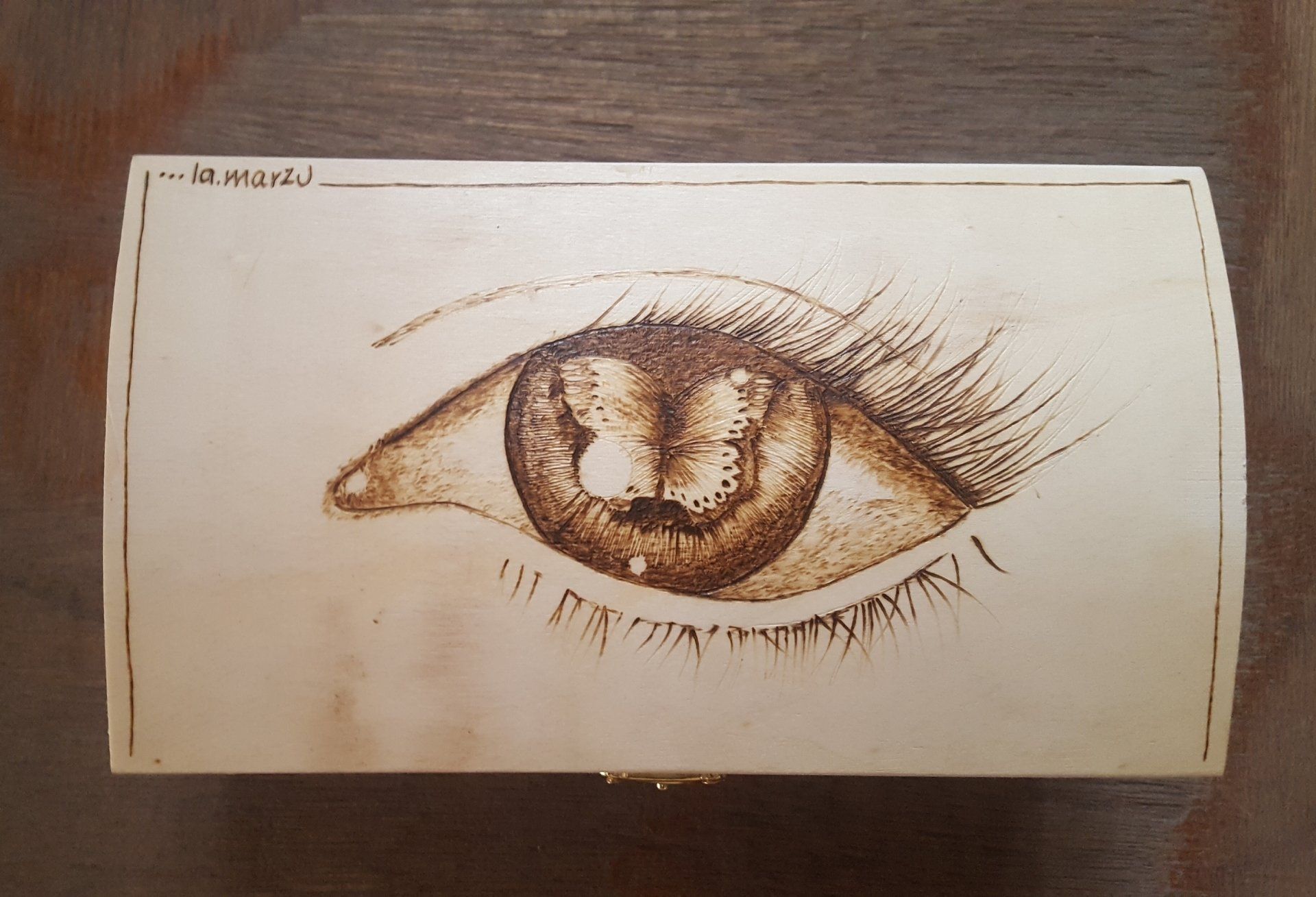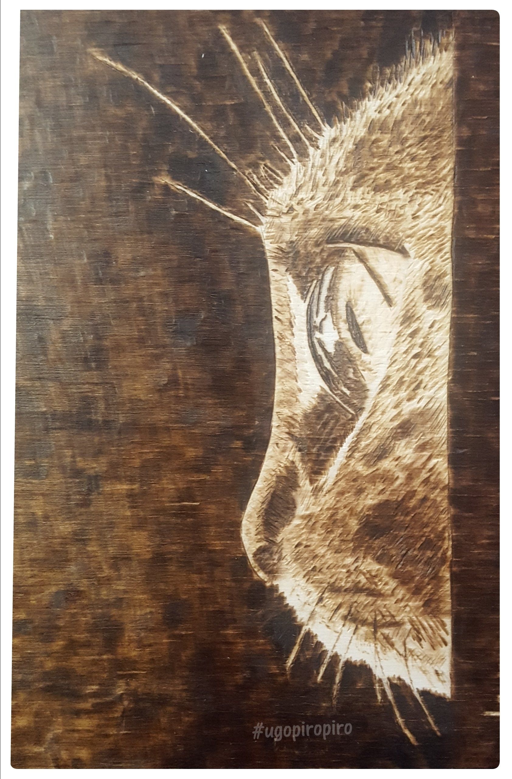 prima prova di pelo, pirografia su multistrato di pioppo cm15x15