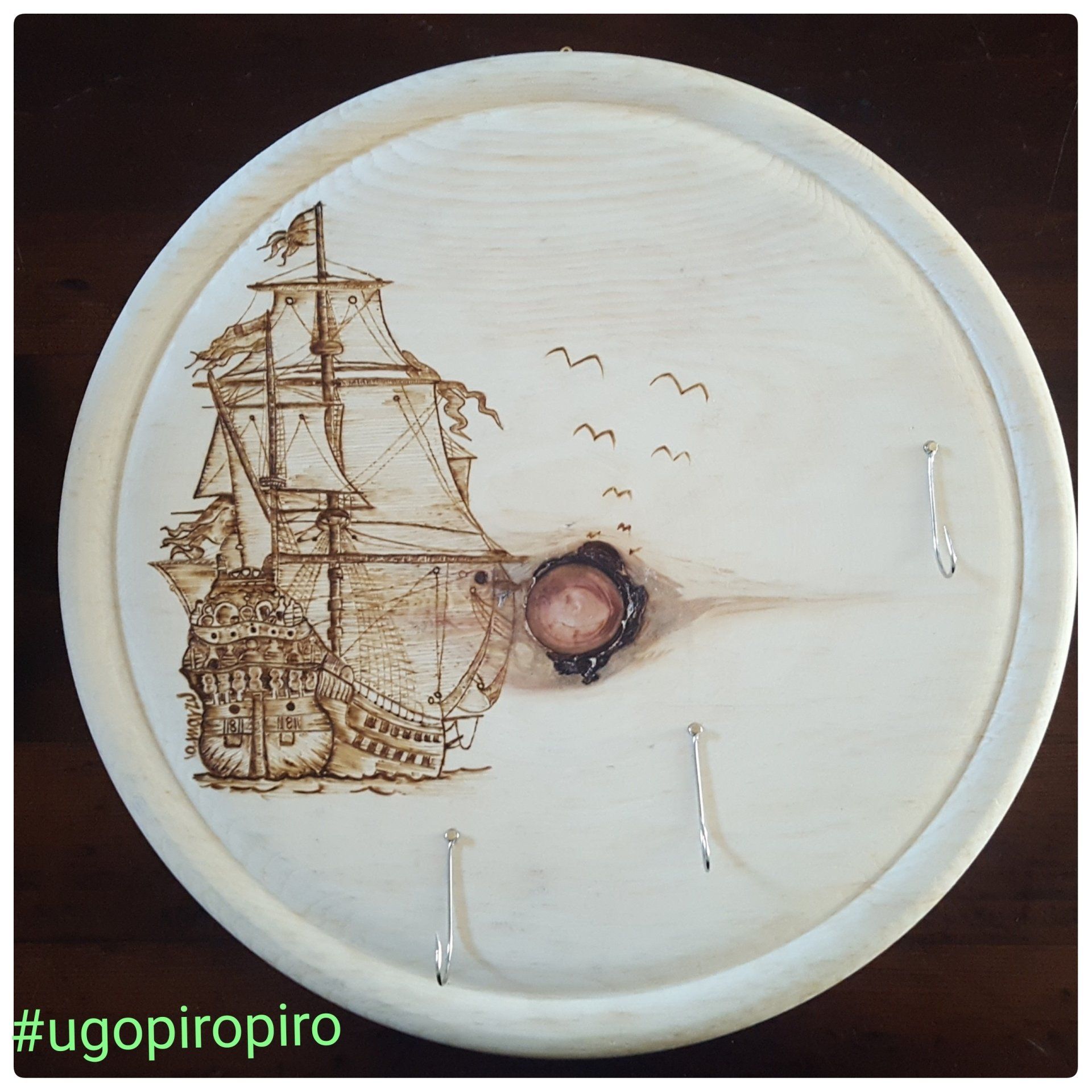Pirografia su taagliere in cirmolo. diametro cm 30