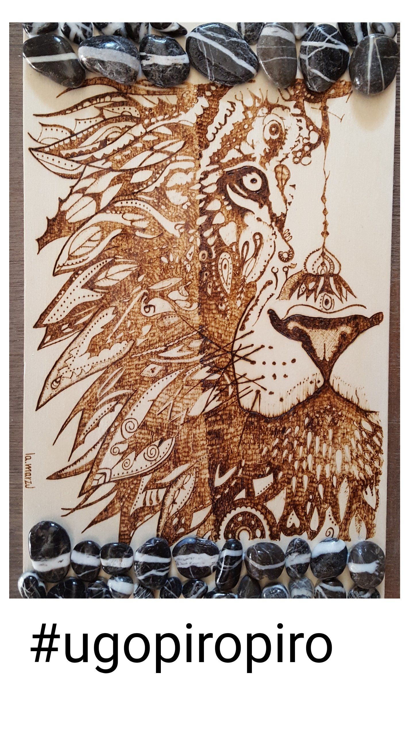 leone mandala, pirografia su compensato di pioppo cm 30x20