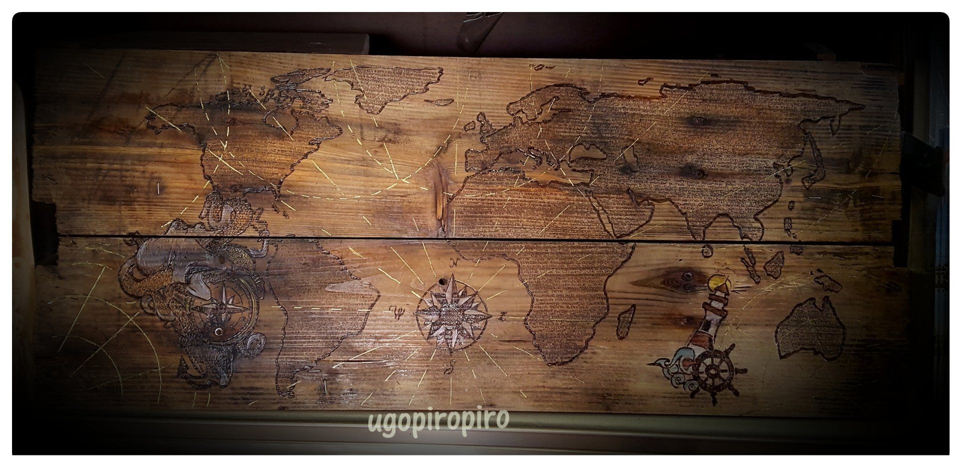 Pirografia su vecchia chiusa per irrigazione con pastelli, cm 80x60