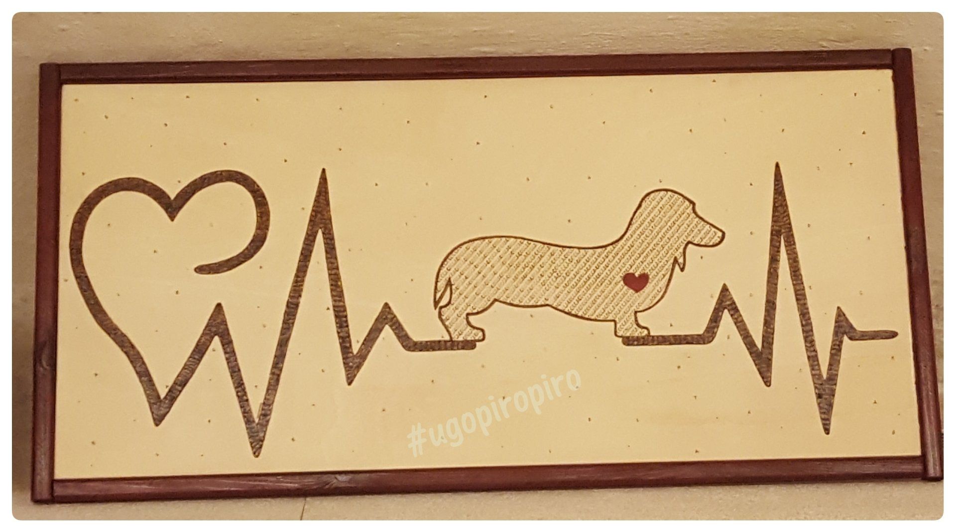 quadro personalizzato su compensato di pioppo con nome del cane all'interno della sagoma cm 80x40