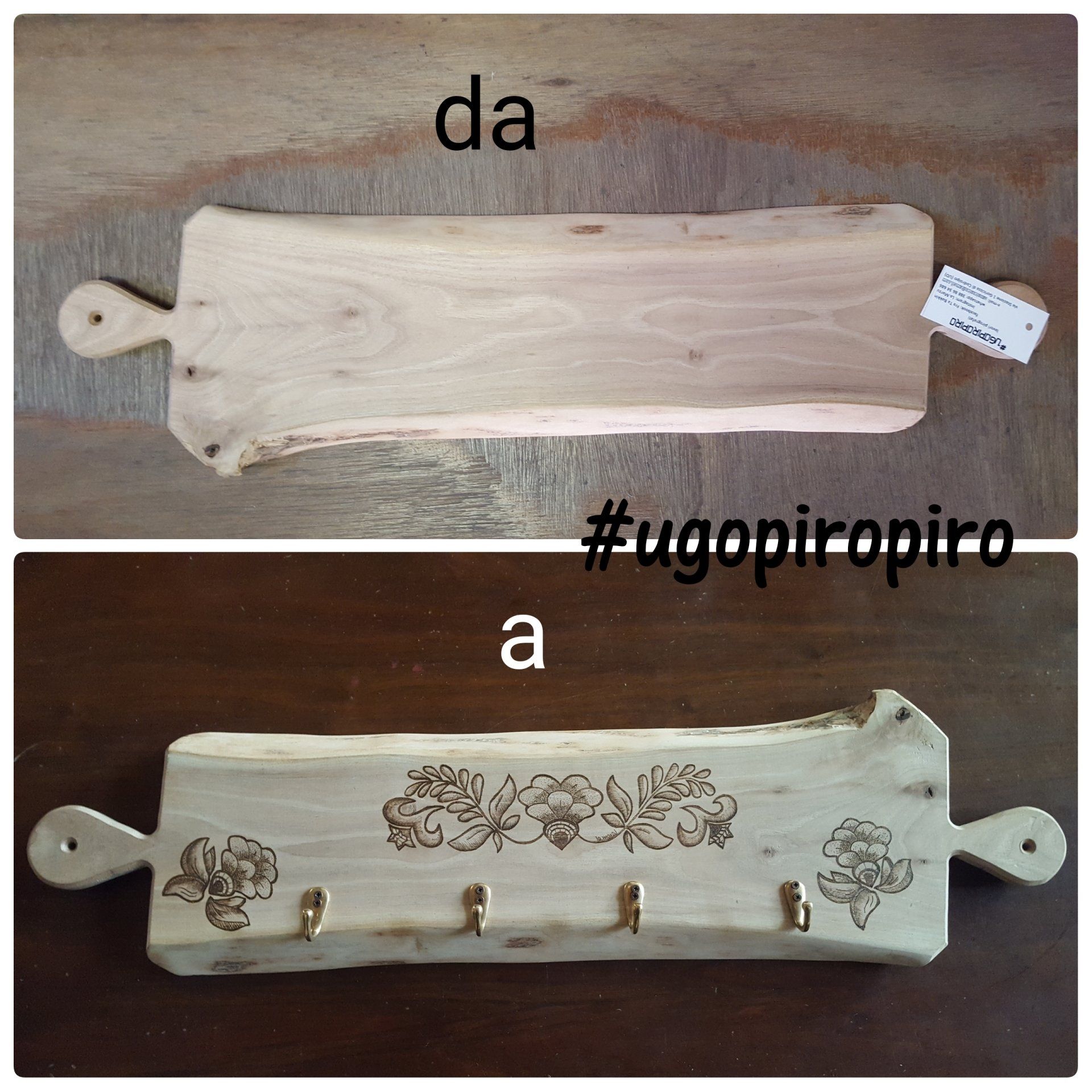 un tagliere fatto a mano con l'aggiunta di alcuni ganci è stato trasformato in unappendino cm60