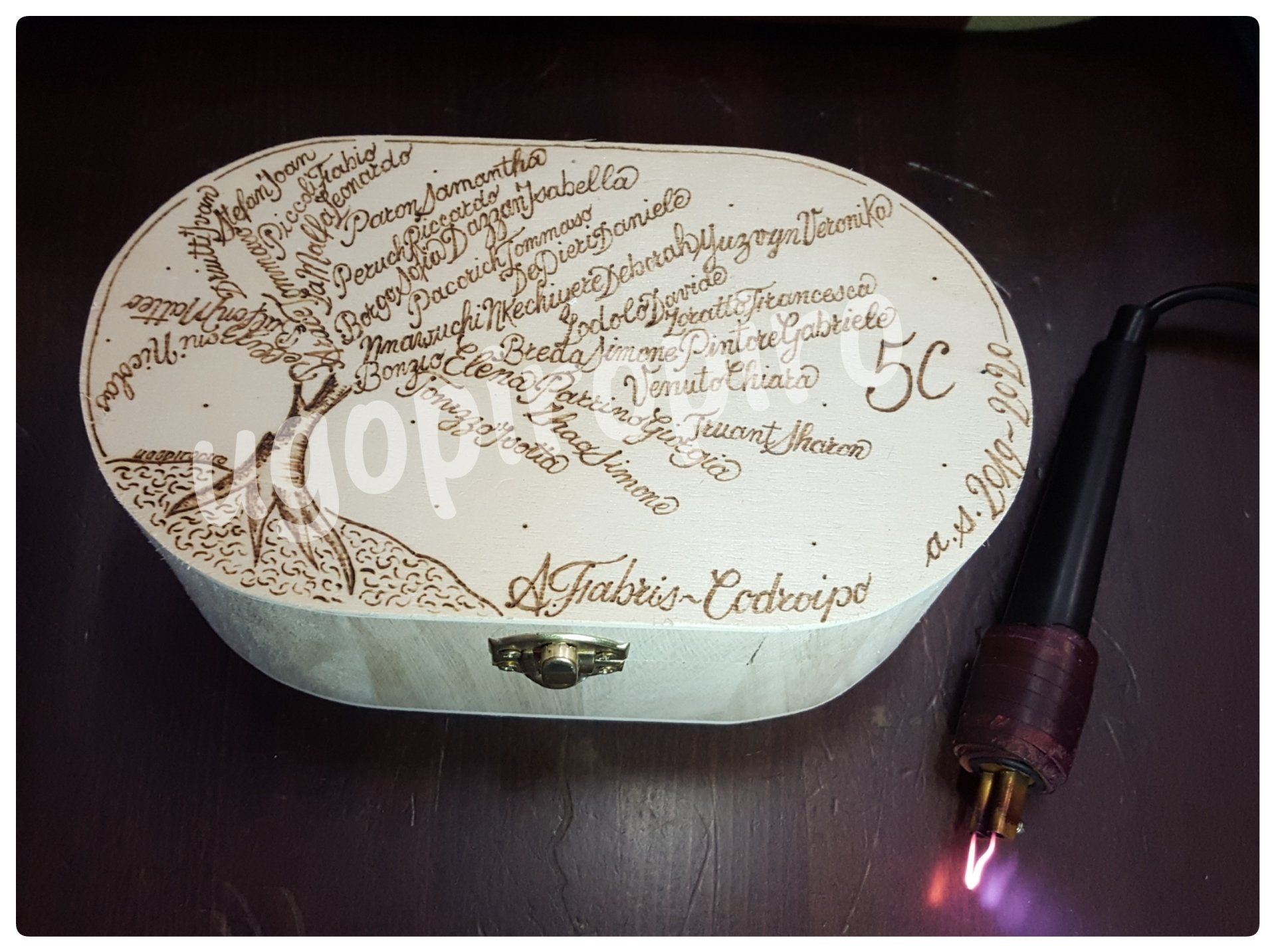 ButtonScatola naturale decorata con scritta fatta con il pirografo