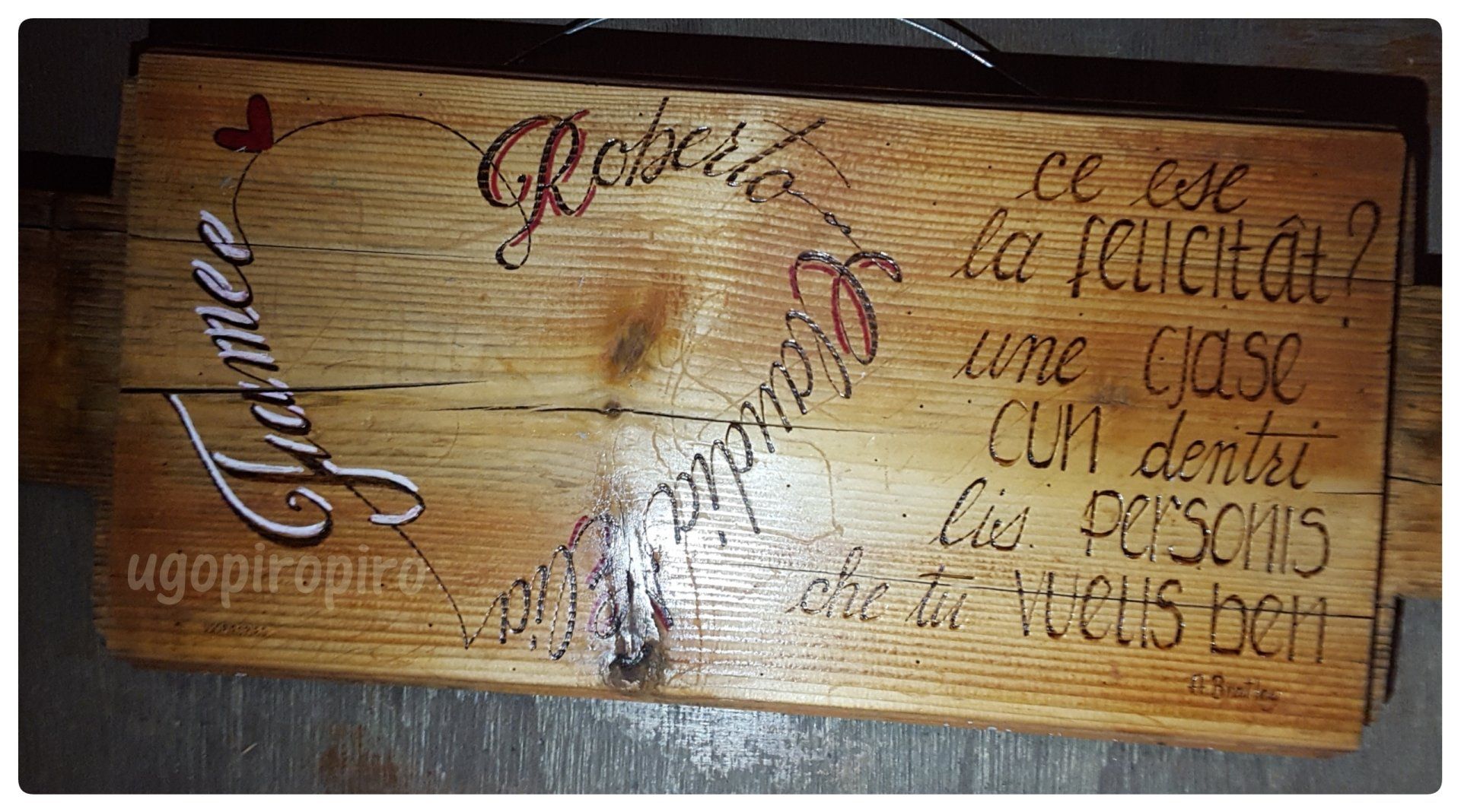 ButtonPirografia su un tagliere in ulivo. Regalo per il fratello che abita da parecchi anni all'estero. "Mandi" è un classico saluto friulano e il suo significato è "nelle mani di Dio". (cm30)